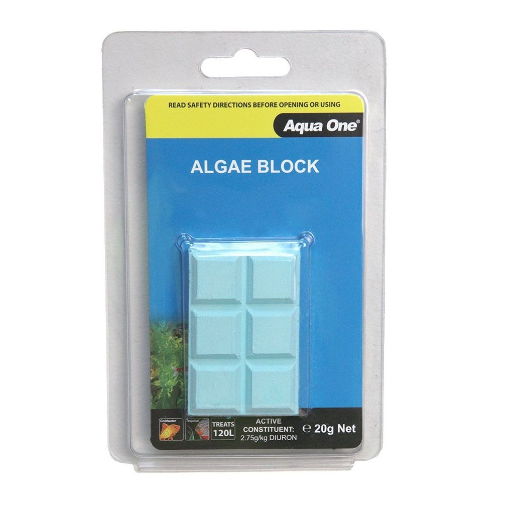 Aqua one algae blocks when placed in your aquarium will slowly dissolve over 7 to 14 days depending on water conditions and circluation and are designed to break down and prevent algae problems within aquariums and ponds, leaving your water crystal clear.