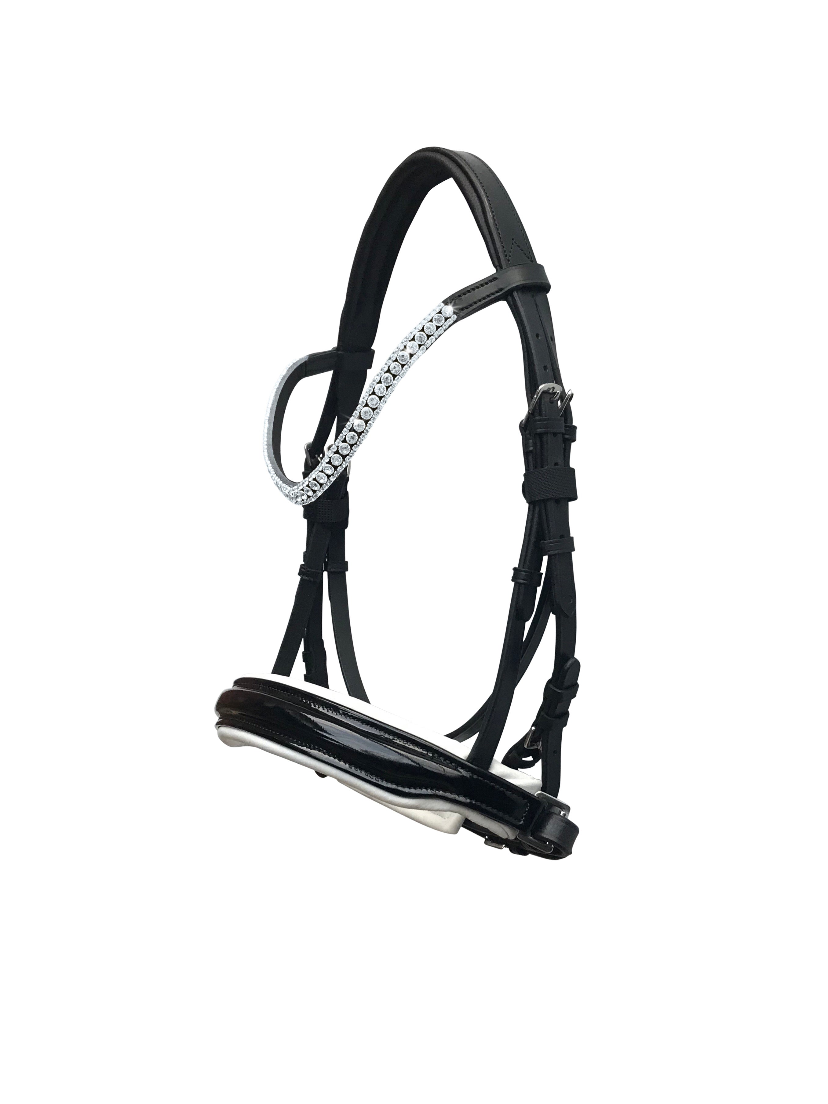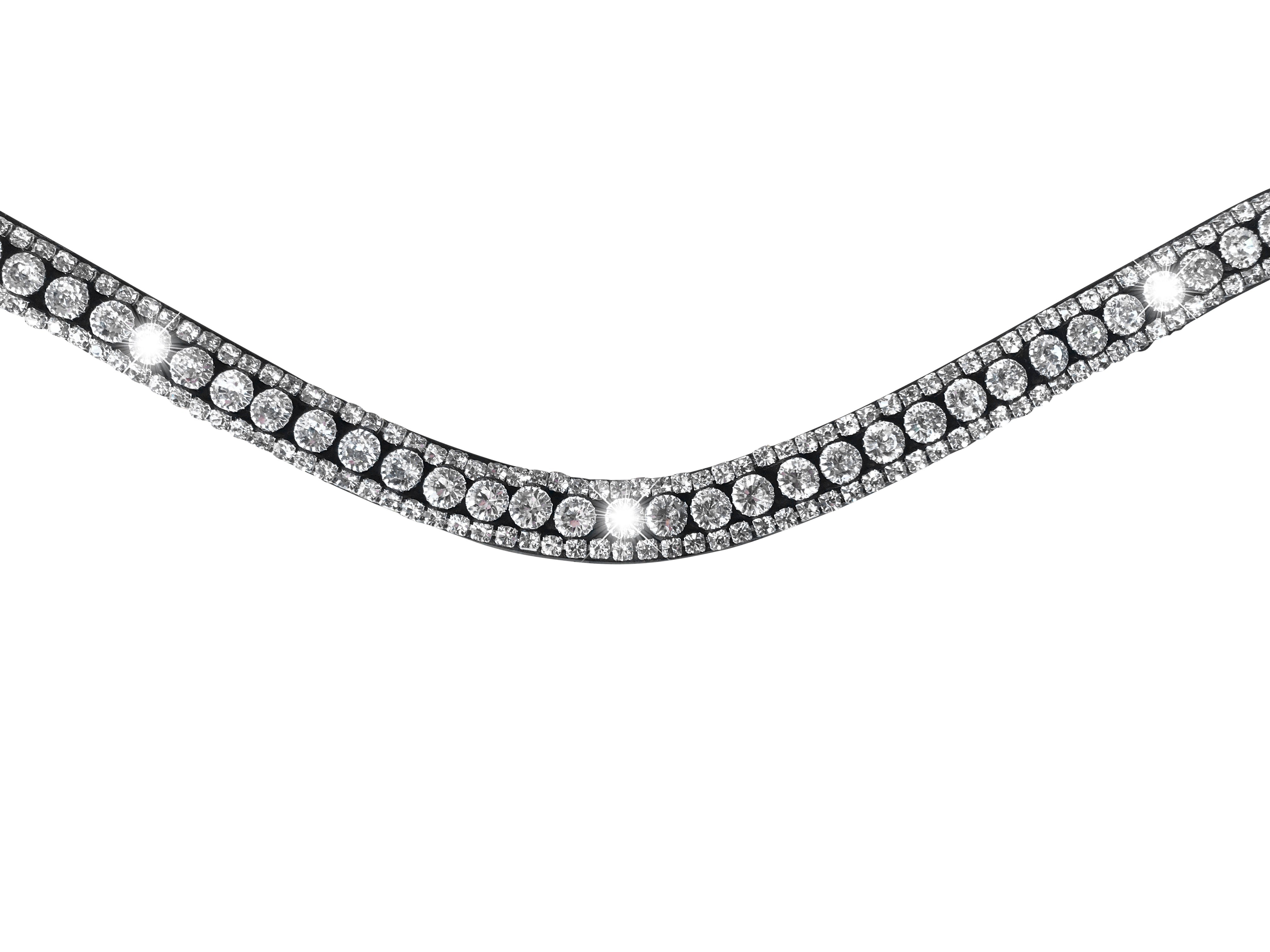The browband features three rows of crystals – a row of solitaire cut crystals encased by two rows of more delicate crystals.