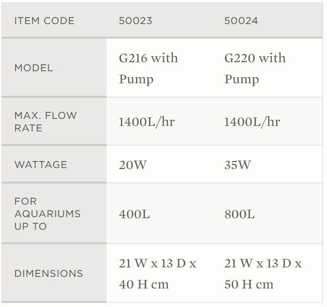 The needle wheel impeller increases the contact area, maximising efficiency. The simple, accurate control allows you to adjust the output quickly and easily. The result is cleaner, clearer water and healthier aquarium inhabitants!
