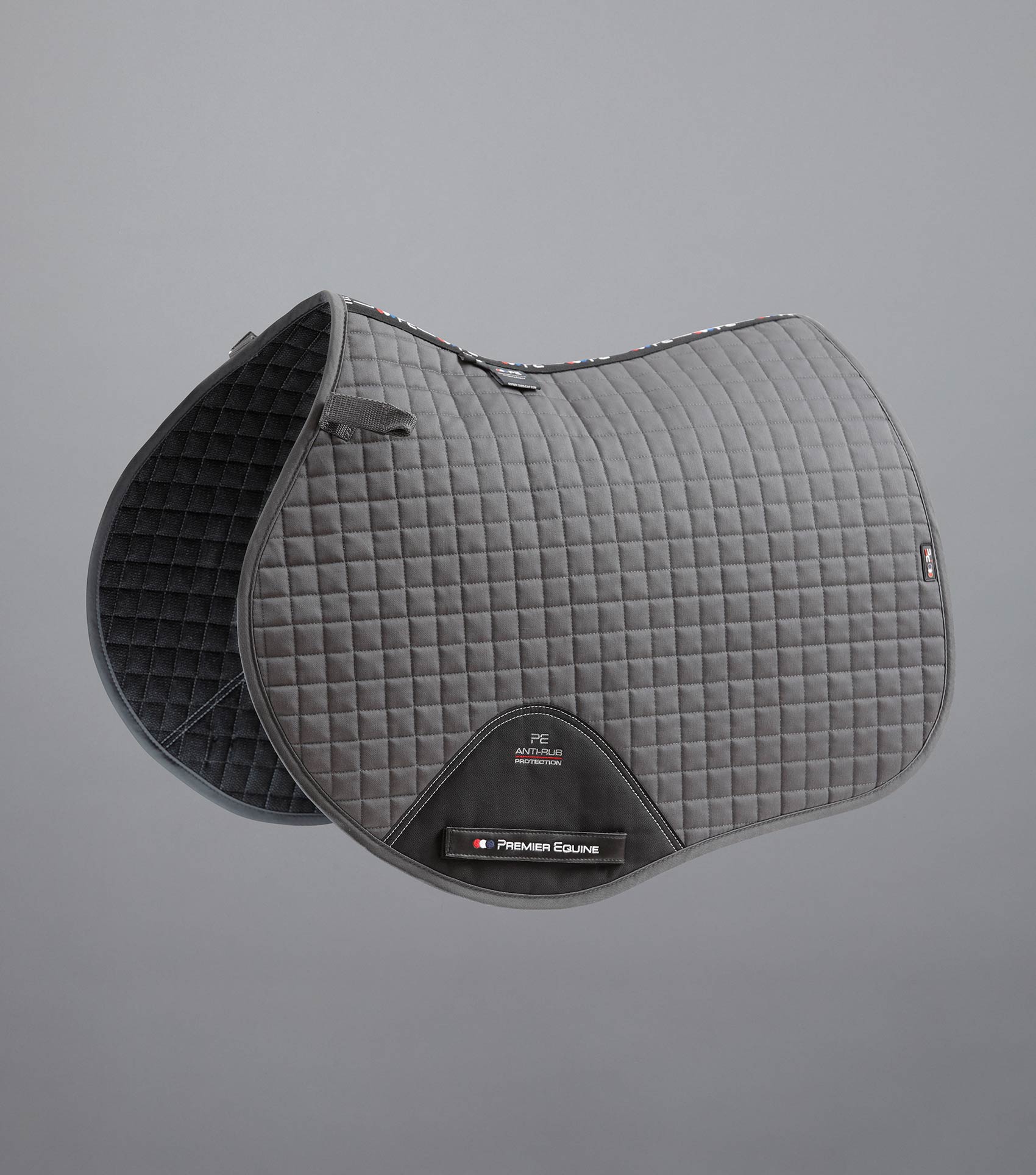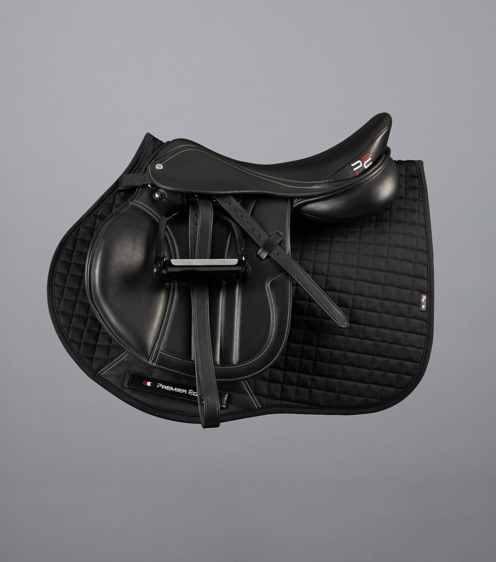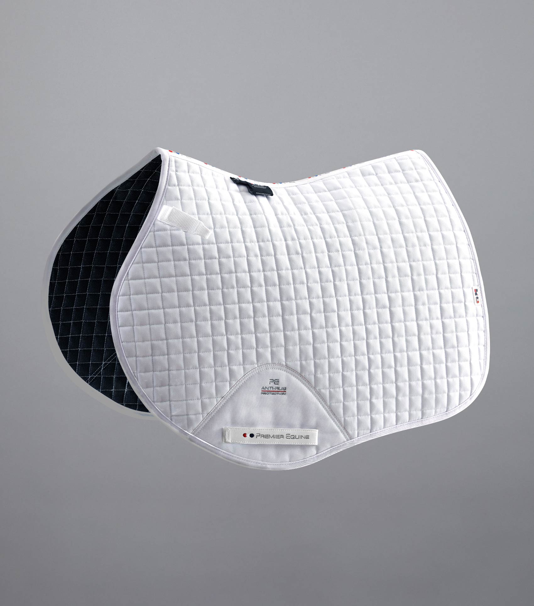 With a desirable quilting this GP/jump saddle pad has been engineered with 100% quality cotton for comfort and performance. Wicking fibres present in the filling draw moisture away from the skin and a highly absorbent Air Tech mesh lining will keep your horse comfortable during exercise.