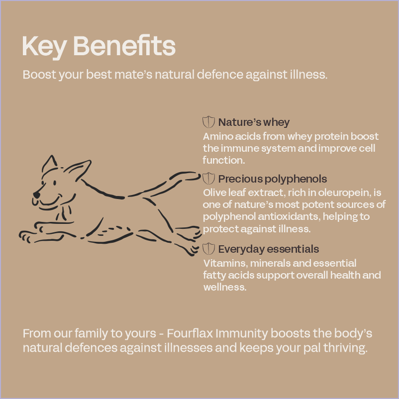 Fourflax Immunity boosts the body's natural defences against illnesses and keeps your pal thriving.