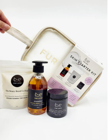 Kickstart a journey towards radiant skin and coat health for your beloved dog with our Skin Starter Kit, meticulously curated by veterinarians. This kit features their top three recommended introductory products, complimented by a customizable routine planner, packed in our exclusive luxury toiletry bag. Ideal for beginners, inquisitive dog lovers, frequent travellers, or simply wishing to prioritize your dog's skin and coat health, this kit is perfect for you.