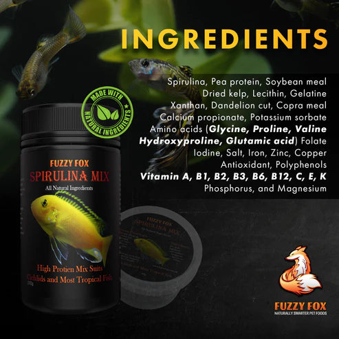 Introducing our revolutionary Sinking Spirulina Fish Food, the ultimate solution for fish enthusiasts who demand nothing but the best for their aquatic companions. This premium fish food is meticulously crafted to deliver unparalleled results, transforming your fish into vibrant, healthy, and captivating specimens. With its exceptional blend of high-quality ingredients and the power of spirulina, our Sinking Spirulina fish food will take your fishkeeping experience to new heights.