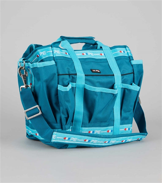 Featuring multiple storage pockets and carrying straps as well as 'PE' branding, this blue and peacock grooming kit bag is strong and durable; perfect for the safe storage of your favourite horse grooming products. Use to store matching Grooming Kits