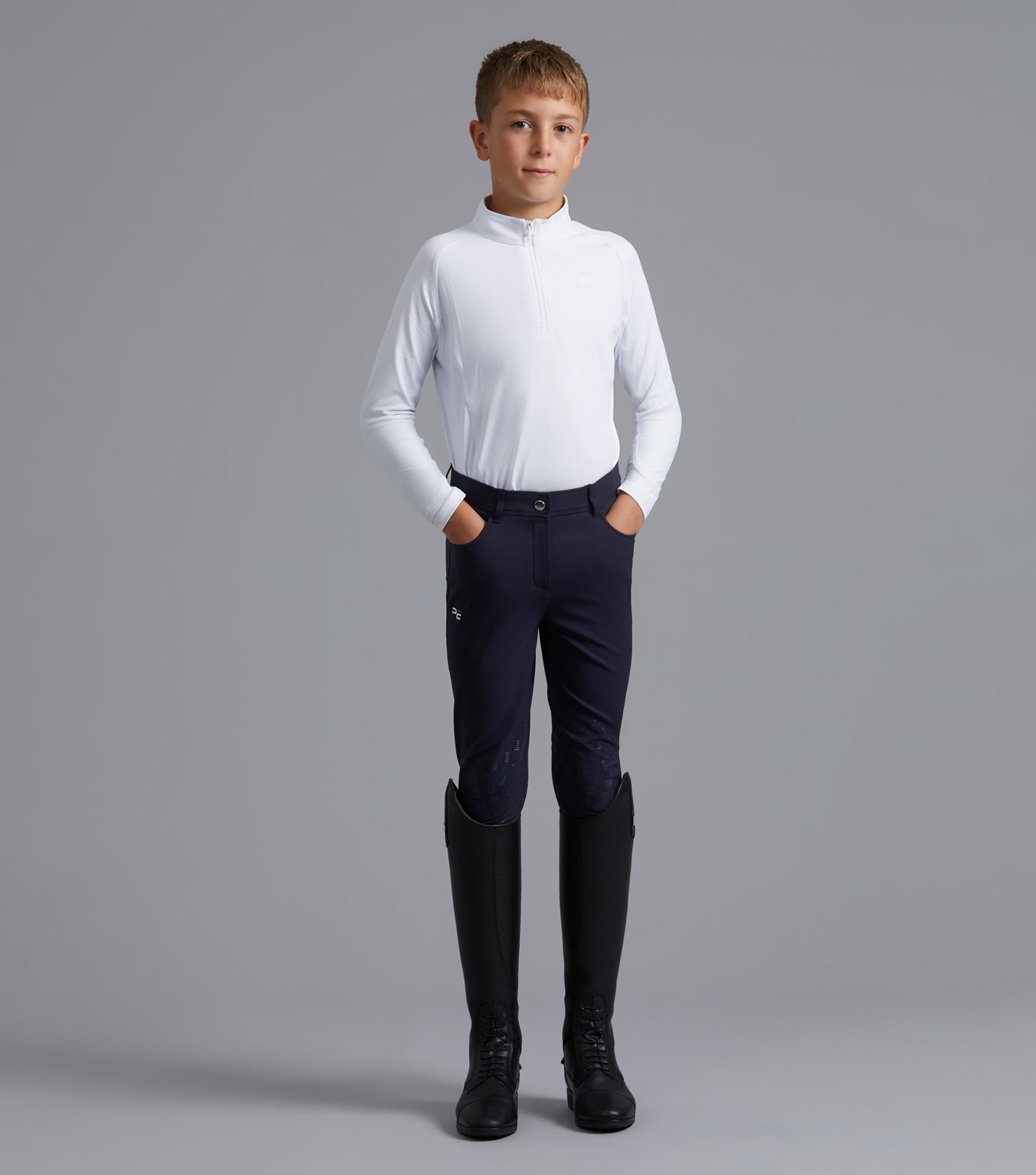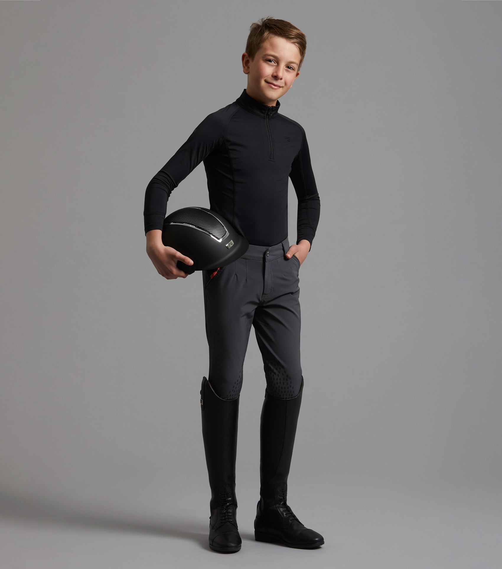 The sweat-wicking thermal fabric offers an exceptional level of comfort during intense training whatever the weather. A quarter-zip and various silicone print elements provide the ultimate in equestrian style and is cut to provide an aerodynamic streamlined silhouette.