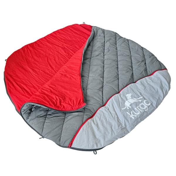 The convertible Pup Sack can be used as a sleeping bag or a dog pad, providing ultimate versatility on your next outdoor adventure. When the sack is fully zipped, your dog will stay warm and comfortable thanks to the sack’s heat-retaining thermal foil lining, insulated filling, and roomy design to accommodate his natural sleeping position. Simply unzip the bag for an on-the-go sleep pad; you can even stake it to the ground using four built-in loops. This washable, compressible travel bed comes with a ventilated mesh stuff sack for easy storage.