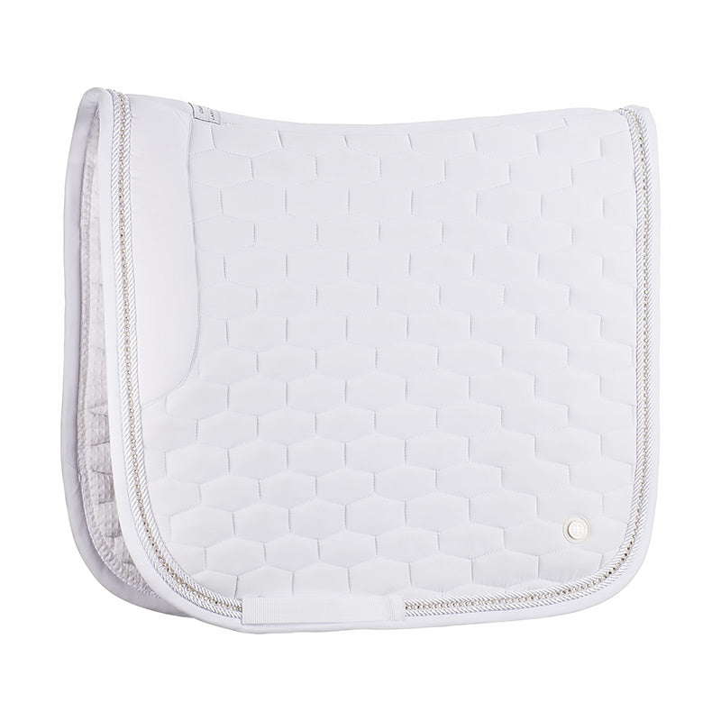 This ultra soft dressage saddle pad is the ultimate in comfort for your horse. Waffle weave cotton lining and eco fill offer natural breathability.