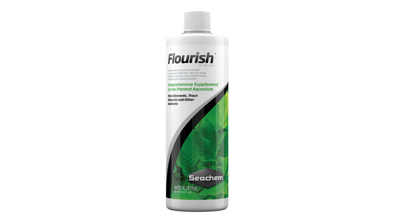 Flourish is a comprehensive plant supplement for the natural freshwater aquarium. It contains a rich assortment of important micro elements, trace elements and other nutrients., including calcium, magnesium, iron and other important elements that have been shown to be beneficial to aquatic plants.