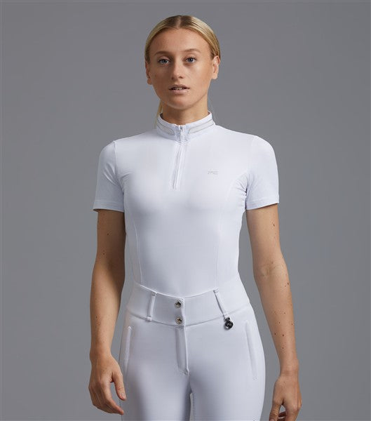 Embellished diamante details set the tone of this opulent competition shirt which has been crafted from our high quality nylon jersey for a style that truly performs. The main body is constructed from a four-way stretch fabric with excellent moisture wicking properties. This technical fabric will help keep you cool whilst looking effortlessly stylish in the show ring.