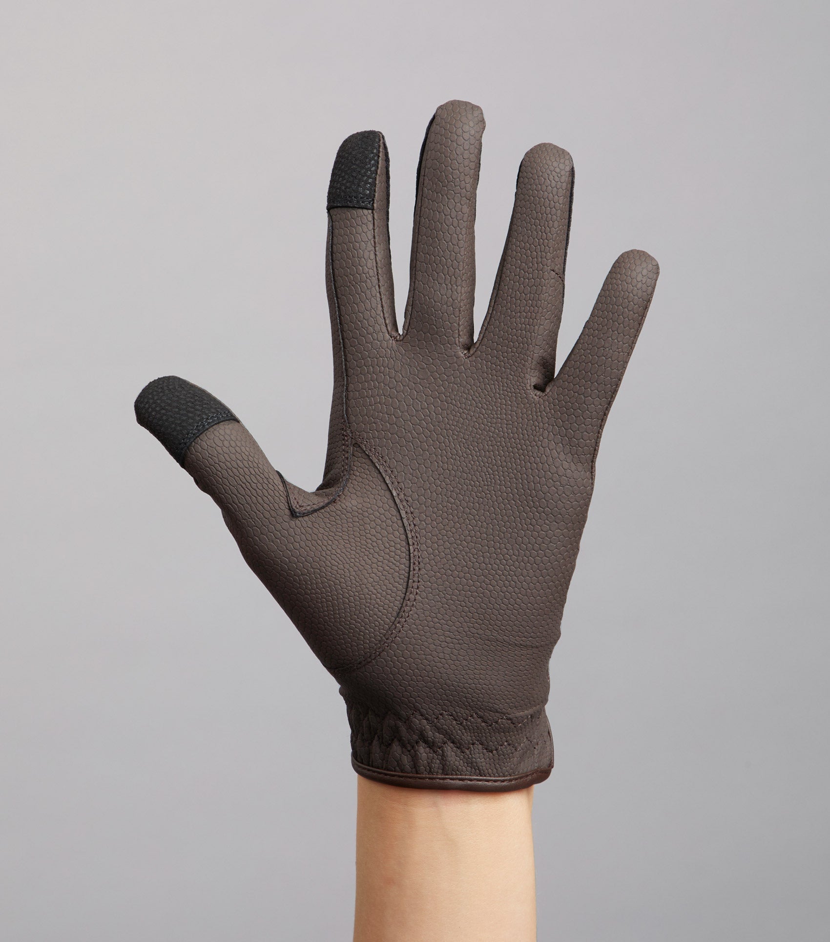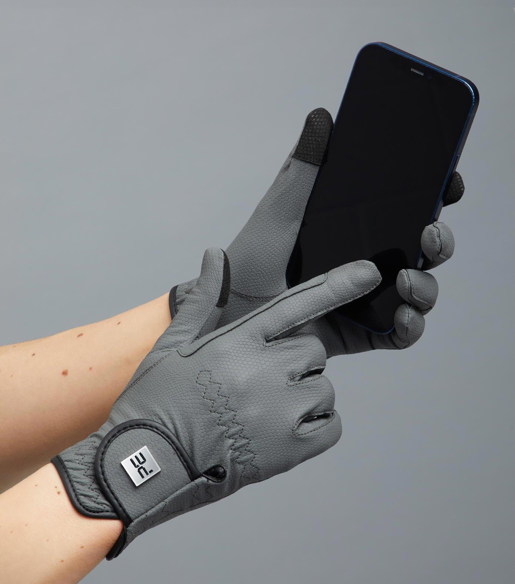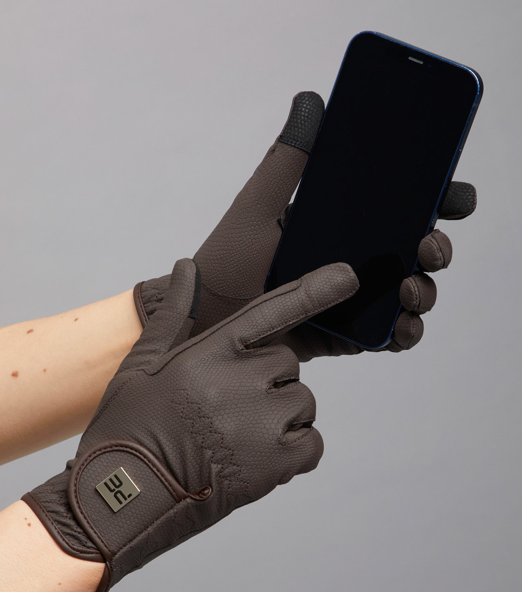 A reinforced panel along the index finger where the rein sits ensures durability and touch screen panels on the index finger and thumb allow use of your touch screen phone without removing your gloves.