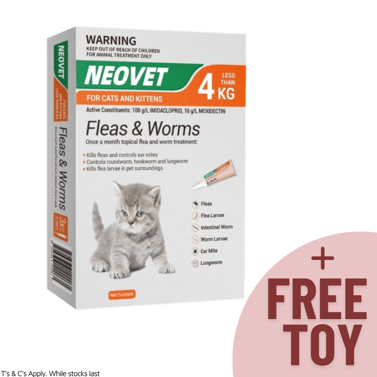 Neovet for Cats & Kittens Under 4kg is a topical spot-on solution that provides comprehensive protection against fleas, worms, and ear mites. Its powerful formula contains imidacloprid and moxidectin, which kills fleas & Mites on contact and protects against immature, adult, and larval stages of intestinal worms. This trusted product is recommended by vets and is suitable for cats and kittens over 9 weeks old. Say goodbye to fleas, mites, and other parasites with Neovet.