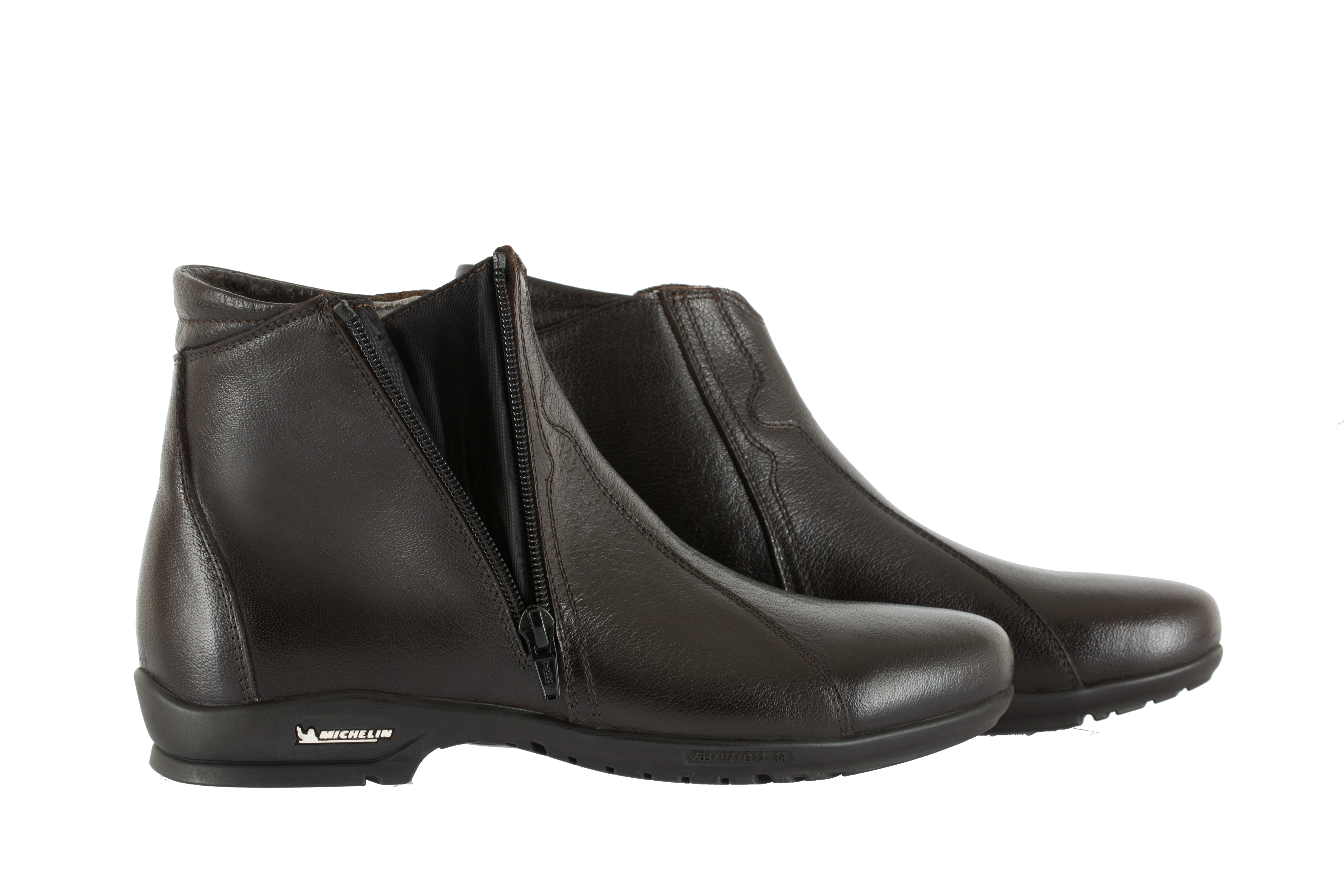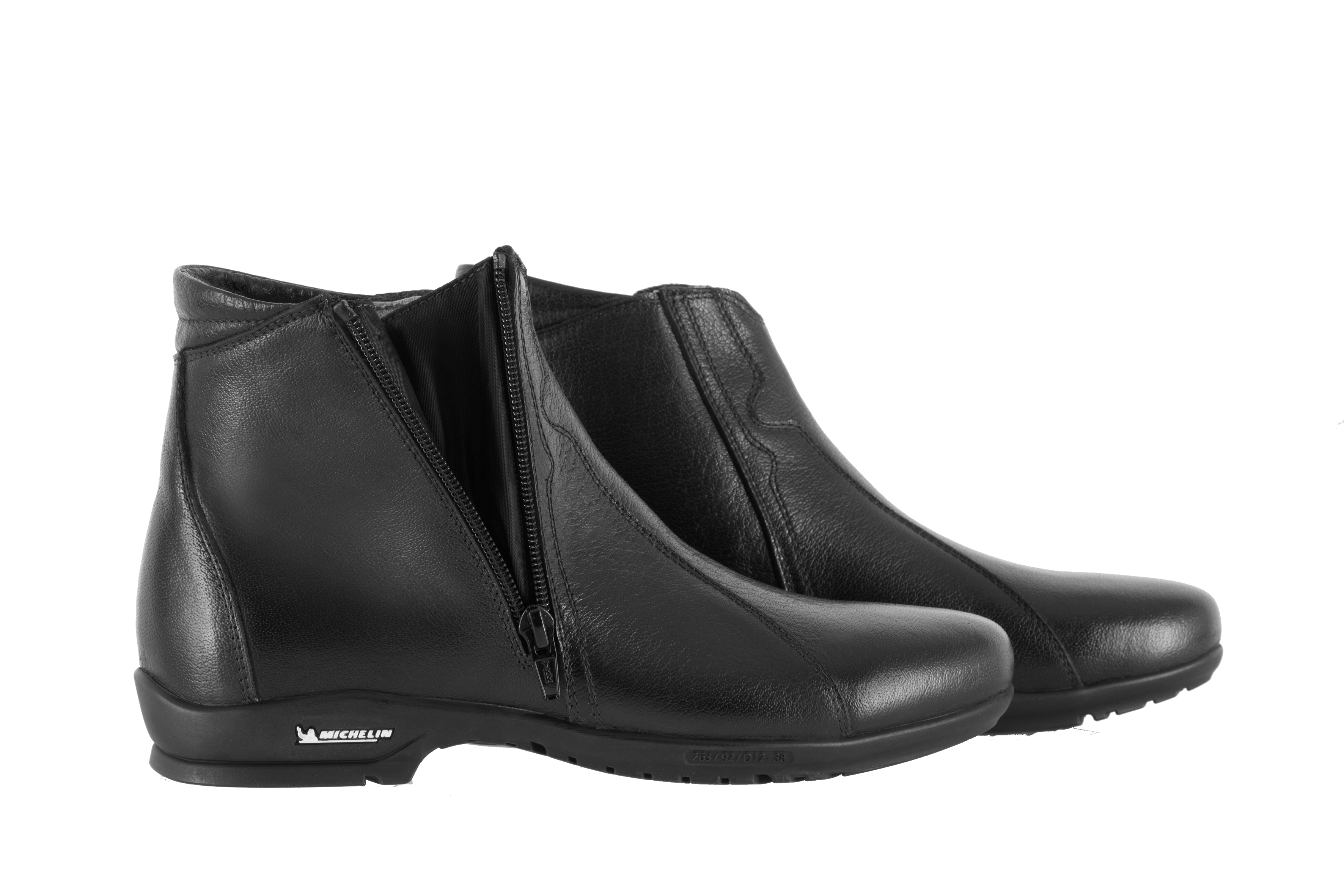 - “Soles by Michelin” glued/sewn 100% rubber sole.