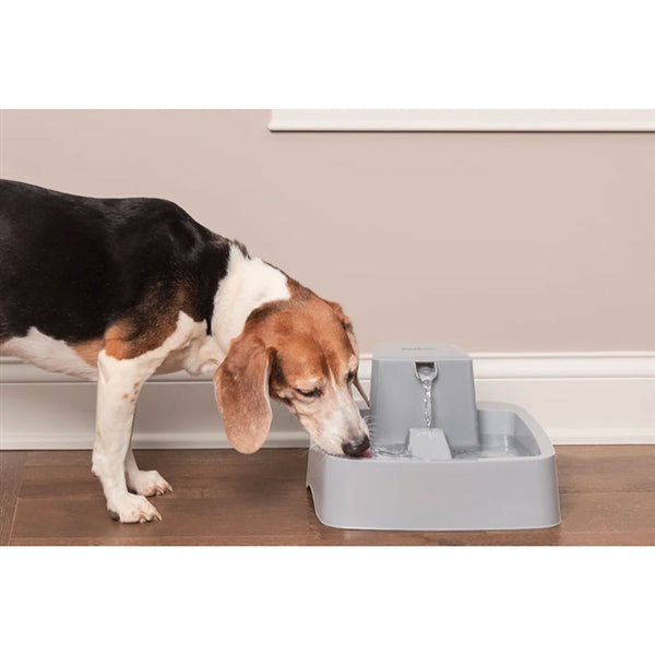 The PetSafe® Drinkwell® 7.5 litre Pet Fountain is designed with you and your pet in mind. This automatic water bowl features a free-falling water stream with adjustable flow control. Choose from nearly silent circulation on the lowest setting to a tranquil stream on the highest. The flow control allows you to tailor the water flow to your pet’s needs. The large capacity bowl is perfect for big dogs and multiple pet households and the square bowl design is large enough for several pets to drink out of at the same time with minimal splashing. When it’s time to refill, simply use a jug to fill the bowl to the desired level. The 7.5 litre Fountain was specifically designed with no hard-to-reach crevices to clean, allowing you to spend more quality time with your pet. Trust PetSafe® to help to keep your pet healthy, safe and happy.