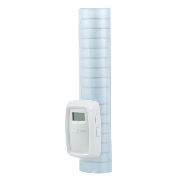 The mat uses a battery-operated controller featuring an LCD display. The LCD display shows the battery level, stimulation level and a counter so you can see how many times your pet steps on the mat. It’s easy to adjust the stimulation level of the training mat depending on your pet’s needs. The 7 stimulation modes allow you to set the stimulation to tone only, 3 levels of static only or 3 levels of static plus tone. When your pet steps on the mat they will feel a safe yet startling stimulation. The mat has a safety timeout feature, so if your pet keeps their paws on the mat for more than 8 seconds, the mat will stop stimulating your pet before repeating the cycle. With a little time and training, your pet will learn to stay out of trouble. Trust PetSafe® to keep your pet healthy, safe and happy.