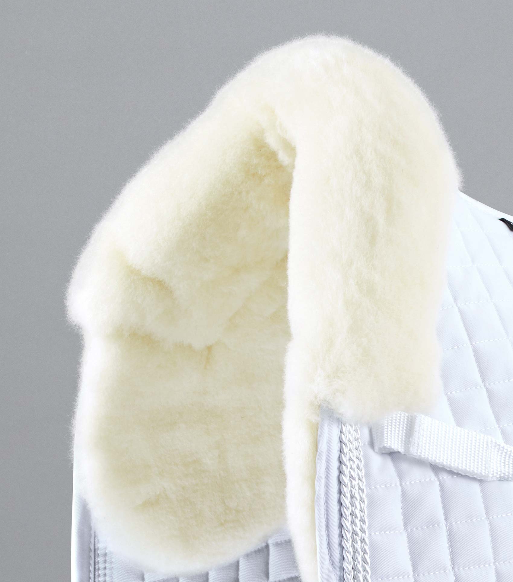 A 600 denier polyester girth cover provides anti-rub protection and double Velcro adjustable straps and adjustable D loop straps help with girthing. Decorative twisted ropes and a European style cut away hem give a stylish and sophisticated look. A truly high-class pony wool saddle pad suitable for everyday or competition use with the advantage of being fully machine washable.