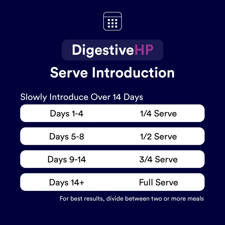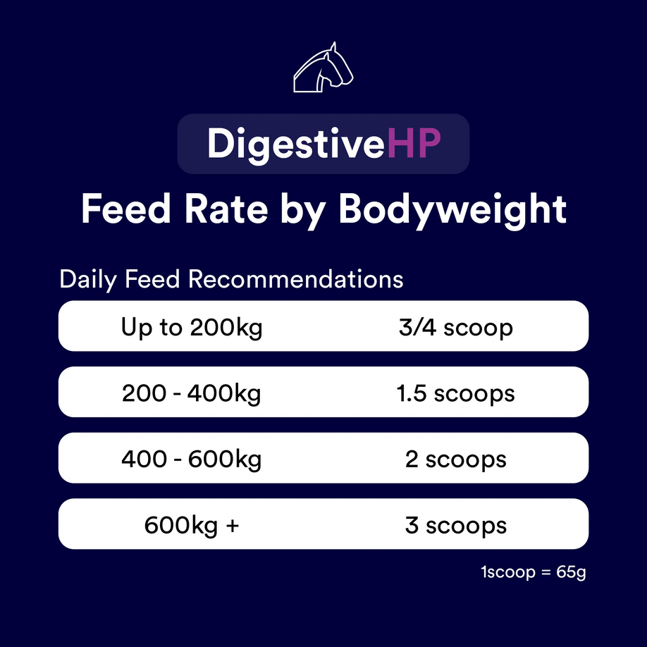 Slowly introduce DigestiveHP over 14 days, especially for horses prone to digestive issues like colic and diarrhea, or those prone to Laminitis.