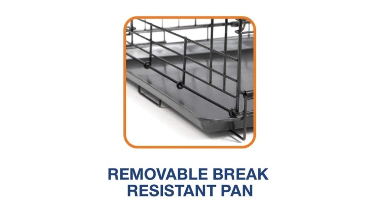 A rust-resistant electro-coat finish helps maximize the life of the crate making it perfect for indoor or outdoor use. Includes a durable, removable polypropylene pan for easy cleaning and a divider panel to adjust the crate size as a pet grows.