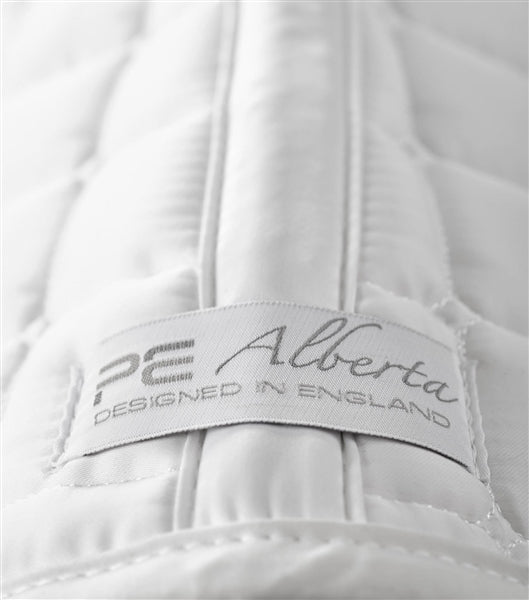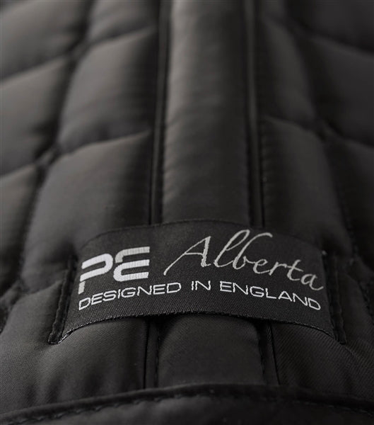 Your Alberta Satin Dressage saddle pad has been carefully hand packaged in a complimentary, reusable zip-fastened storage bag to keep your tack room tidy when not in use and for easy carrying.