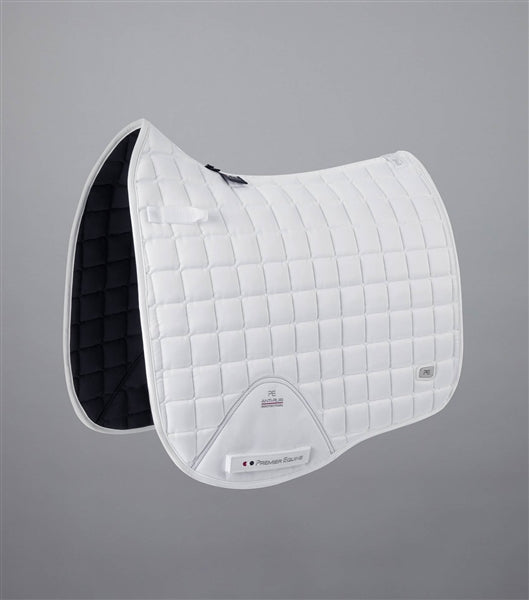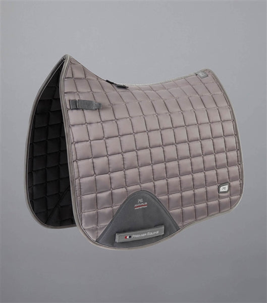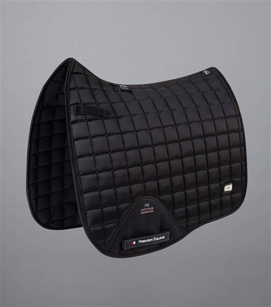 Crafted from a quilted satin outer fabric with a luxury appearance, this dressage close contact saddle pad provides signature styling with a lavish look. Adjustable Velcro D loop straps and Velcro girth straps allow you to secure your saddle.