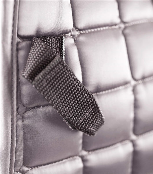 Crafted from a quilted satin outer fabric with a luxury appearance, this GP/Jump close contact saddle pad provides signature styling with a lavish look. Adjustable Velcro D loop straps and Velcro girth straps allow you to secure your saddle.