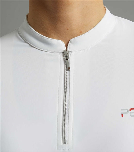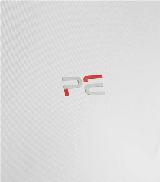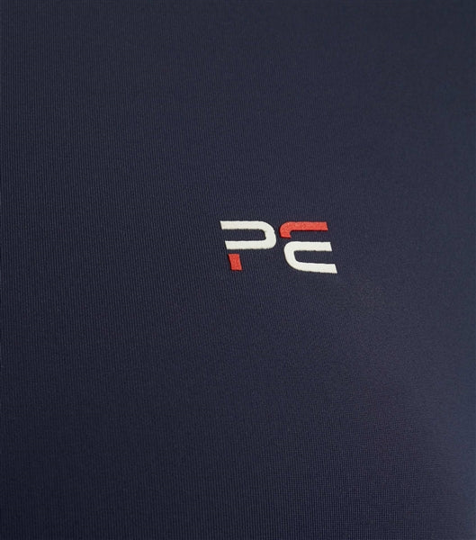 A decorative curve stand collar is finished with a ¹/₄ zip, allowing for easy closure. PE brand colour stripes trim the front and sleeve edge for a sporty touch.