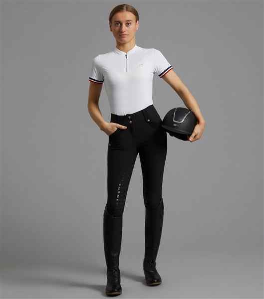 The Alito riding top offers breathable comfort and sportive styling for your everyday equestrian wardrobe. Crafted from a technical four-way stretch fabric, this ladies short sleeved riding top offers a flattering fit alongside ultimate freedom of movement in the saddle and on the yard.