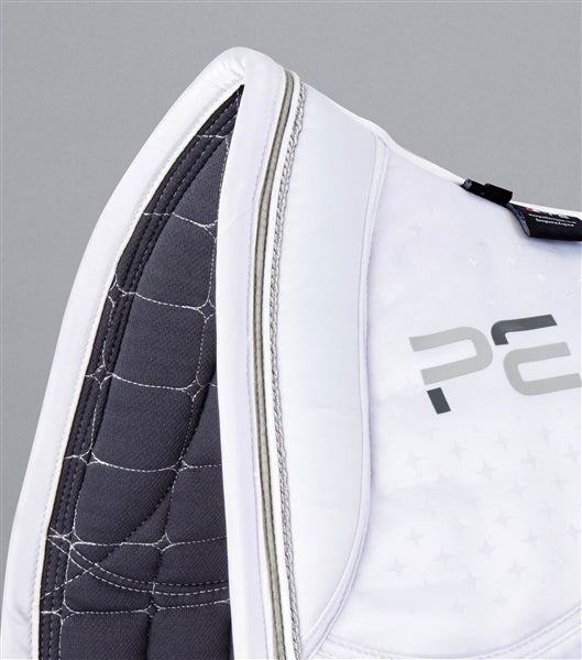 The top line focuses on the comfort of your horse, a 100g fill provides shock absorption and aids even pressure distribution. An anti-slip Tech Grip gel presented in an elegant pattern helps to effortlessly secure your saddle in place. The soft shaped wither pad roll sits forward from the pommel and helps prevent the saddle from sliding forwards.