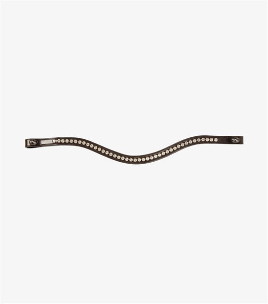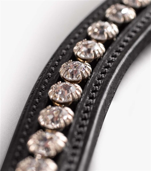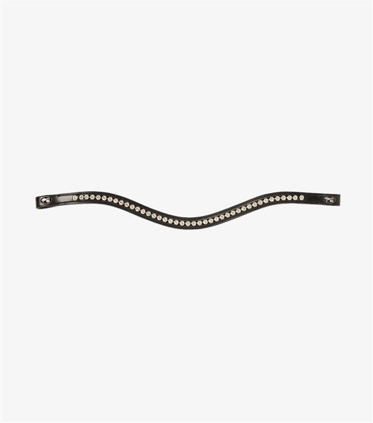 The Bellissima features a row of shimmering, circular diamantes backed on to finest quality Italian leather. A subtle, dipped shape helps highlight your horse’s face and creates a stunning silhouette. ‘PE’ branded brooches sit neatly at either end of the band providing a sleek and professional finish. This diamante browband offers show stopping style both at home and at competitions.