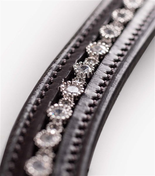 Unique central shaping with deep-set diamante chain featuring alternating sized stones to really define each diamante as an individual showpiece. Beautifully mounted in intricately detailed silver chain, the browband extenuates an exquisite look that demands the eye while being delicate and refined. A perfect choice for understated glamour.