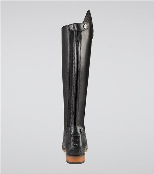 The freedom of movement that these leather riding boots provide is enhanced by the elastic lace panel, which increases flexibility and comfort around the ankle area. A full-length rear zip and snap button closure provides the means for easy and convenient removal. The Bilancio design provides a close contact, sculpted fit that contours the calf comfortably due to the discreet elastic panel which is strategically placed along the length of the zip.