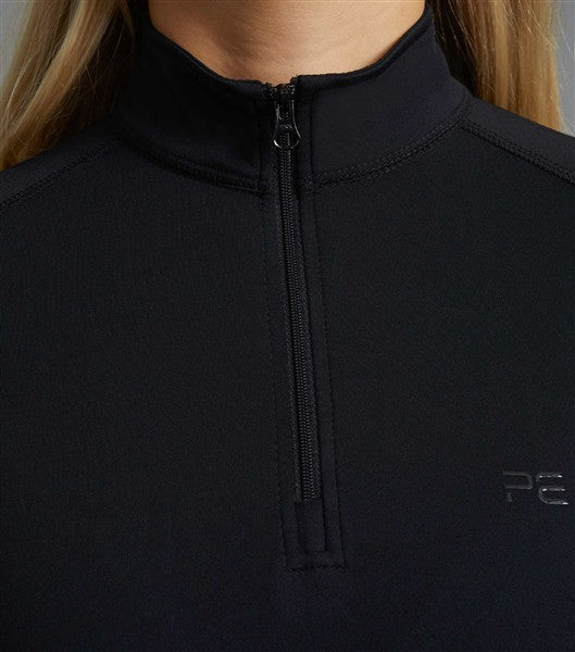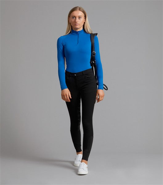 The sweat-wicking thermal fabric offers an exceptional level of comfort during intense training whatever the weather. A quarter-zip and various silicone print elements provide the ultimate in equestrian style and is cut to provide an aerodynamic streamlined silhouette.