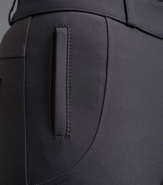 The design of the breeches offers a flattering silhouette with two faux pockets at the rear finished with a button, and a vertical zip pocket at the front. A full seat of branded silicone gel aids security and grip making them ideal for a range of disciplines.