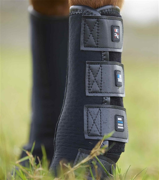 These advanced high-cut mud fever boots are made with Air-Tech ventilated neoprene for maximum breathability. Anatomically shaped to provide superior comfort for your horse whilst covering the cannon bone and soft tissues. Fatigue is reduced in the tendon, fetlock, ligaments and suspensory. The boots cover the whole of the lower leg and pastern area, making them great for use as a preventative measure against mud fever and chills. Suitable for year-round use in paddocks. Can be used on both front and hind legs.