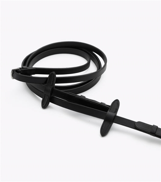 At 5/8 wide, they are ideal for use as a top rein on a double bridle or they can be used on their own and with a martingale as they feature leather martingale stoppers. Finished with stainless steel billets they make a stunning addition to any bridle.