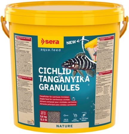Cichlid Tanganyika is the staple food consisting of gently manufactured granules without dyes and preservatives for mainly carnivorous, small cichlids and omnivores.