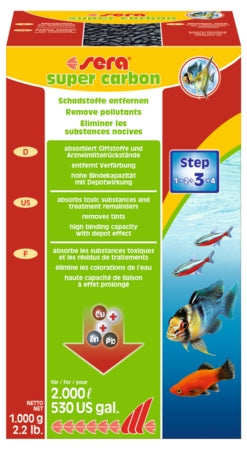 sera super carbon is also excellently suitable for using in acute intoxication cases (e.g. when suspecting pollutants have entered during renovation work, from unsuitable decoration items, overdosages etc.) as well as for removing annoying water tints.