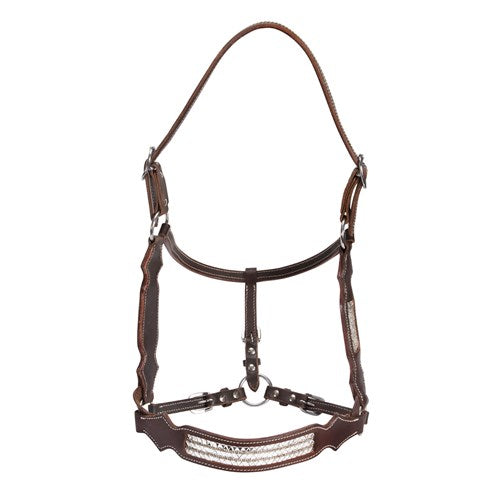 Discover the elegance of the Fort Worth Dakota Leather Halter, meticulously crafted from premium leather. This halter features eye-catching silver bling details and diamantes adorning the two-inch wide nose and cheek pieces, making it a standout piece. Designed in a rich dark brown colour with durable stainless-steel fittings, this halter is perfect for those who want to make a statement.