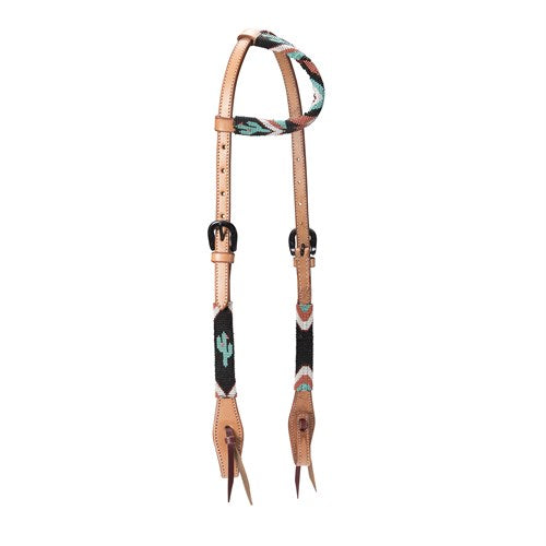 Fort Worth Navajo One Ear Headstall features a Navajo pattern on feature beading on the ear piece and cheek pieces.