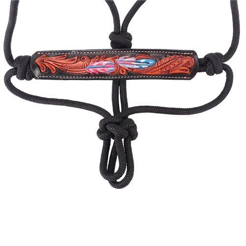 Discover the elegance and durability of the Fort Worth Rope Halter with a Leather Nose in Pink Apache design. This halter combines practicality with style, featuring a beautifully tooled leather noseband that adds a unique flair to your horse's tack. Designed to fit all sizes, it is a versatile and essential addition to any equestrian collection. Crafted by skilled Fort Worth artisans using traditional techniques, this halter promises both aesthetic appeal and lasting quality. Enhance your horse's look while ensuring comfort and durability.