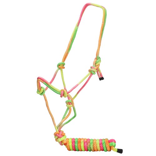 Discover the Fort Worth Rope Halter with Lead, crafted from premium, durable nylon for ultimate strength and reliability. Designed without hardware, this halter is virtually unbreakable, ensuring your horse's safety and comfort. Available in a vibrant array of colours, it adds a touch of style to any stable. This one-size-fits-all halter comes complete with a matching 10-foot lead, making it a perfect choice for horse enthusiasts.