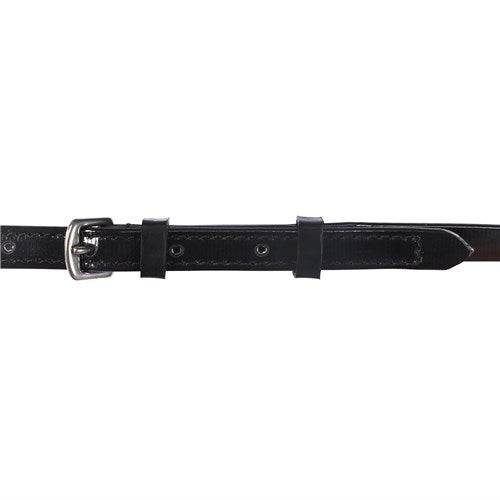 The swivel snaphook attaches to the noseband to control the horse's head carriage.