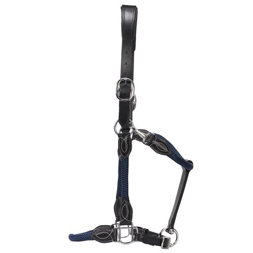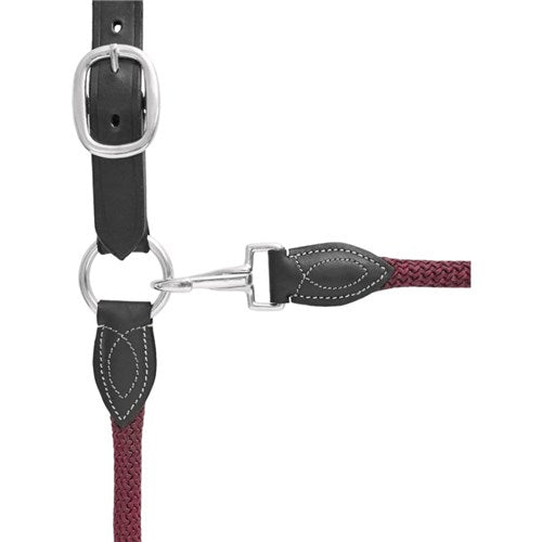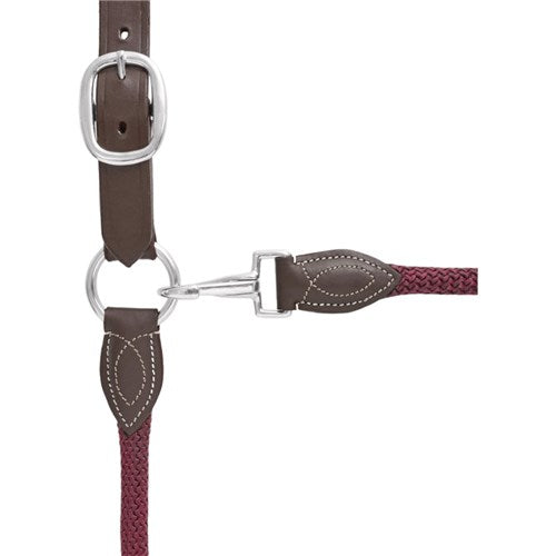 Beautifully stitched detail on this leather and rope halter makes an elegant statement.