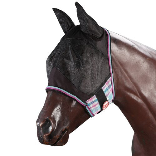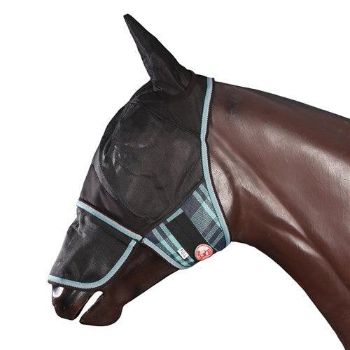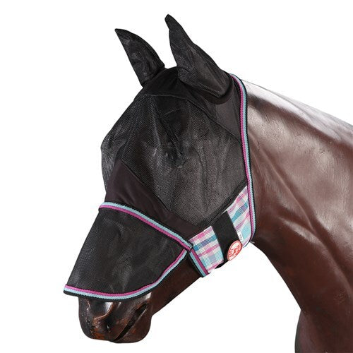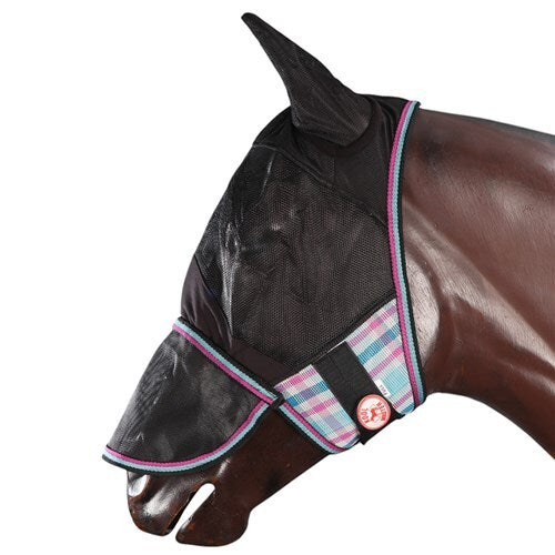 The Kool Master PVC Fly Mesh Mask with Ears and Nose Cover is designed to provide exceptional protection for your horse during the summer months. This durable fly mask matches the PVC Shade Master rugs and features strong Velcro closures for a secure fit.