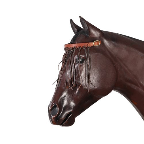 Elevate your horse's comfort and style with our Leather Browband Flyveil. Crafted with premium quality leather, this flyveil features adjustable buckle attachments on both sides for a perfect fit, ensuring maximum convenience and functionality for your equine companion.