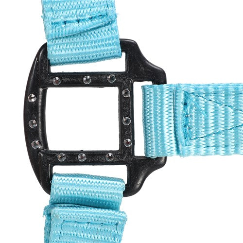 Strong 25mm webbing with striking black hardware and snap fastening at jowl for ease of fitting.