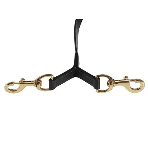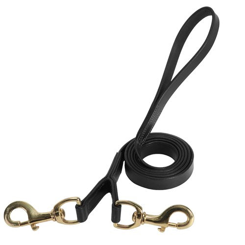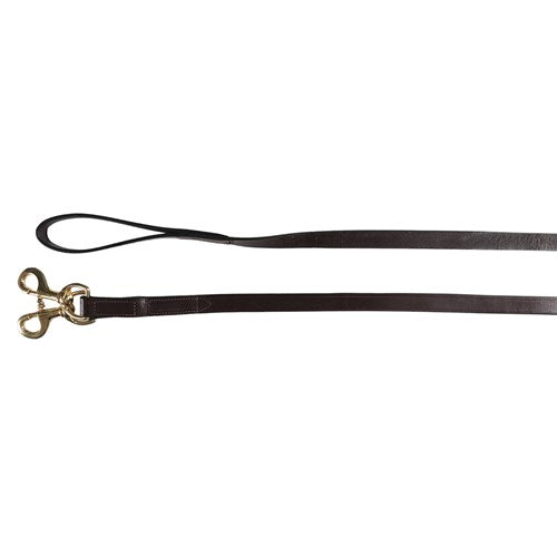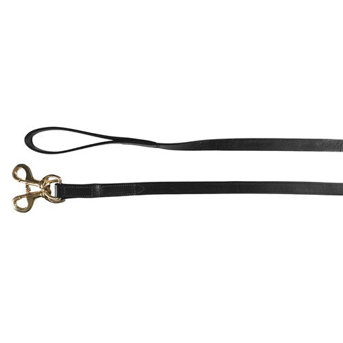 25mm wide leather lead with hand loop and two heavy brass snaphooks.