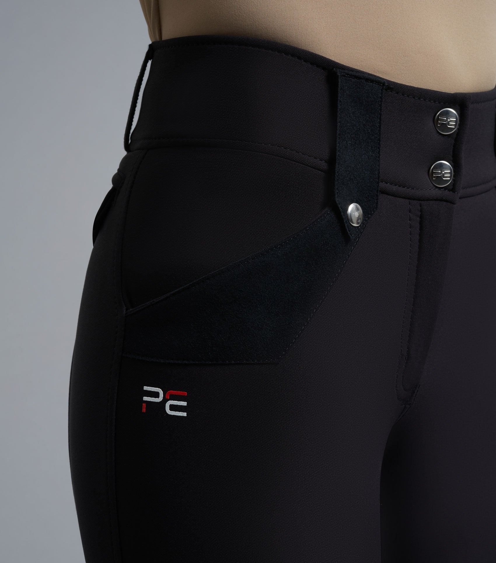 Suede detailing has been incorporated along the pockets and belt loops to deliver a subtle sophisticated look. These traditional deep front pockets offer a secure place to store valuables with the two button-fastened rear pockets which enhance the shape of the breech. A slider fastening secures the breeches and the waist features belt loops and tasteful PE branding.