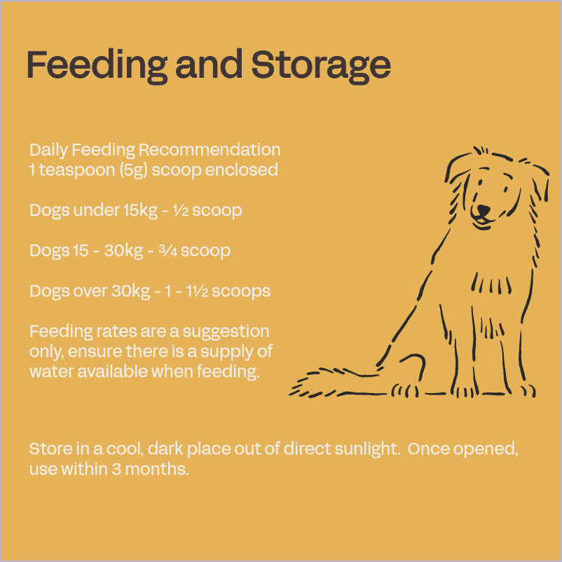 Mussel Powder from our beautiful New Zealand waters is renowned for its amazing levels of ‘GAG’s’ (Glycosaminoglycans) to promote flexibility, elasticity and strength of cartilage and connective tissues. Naturally nutritious, this delicious sprinkle contains natural sources of protein, glucosamine and chondroitin to support mobility and health. What’s more, it’s rich in everyday essential vitamins, antioxidants and essential fatty acids support the wellbeing and happiness of our furry friends.