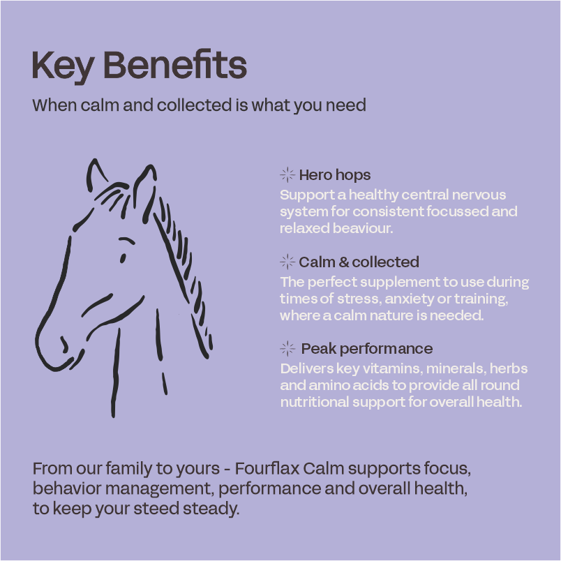 From our family to yours – Fourflax Calm supports focus, behaviour management, performance and overall health, to keep your steed steady.
